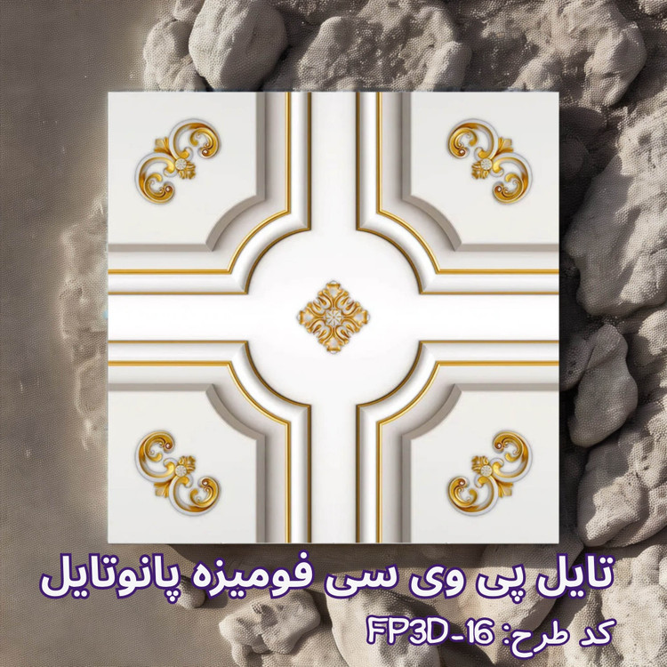 تایل پی وی سی فومیزه (PVC فومیزه) پانوتایل مدل FP3D-16 سایز 60x60 بسته 8 عددی